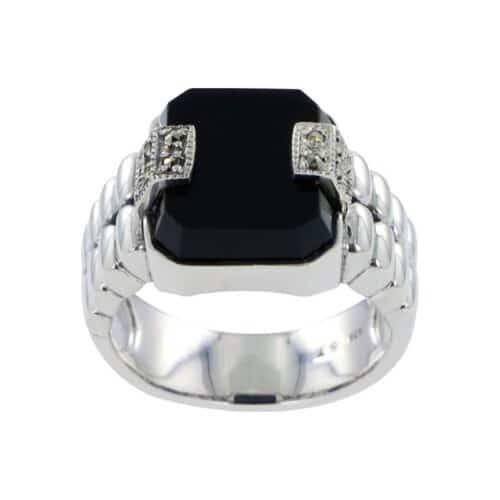 CALYPSO – Bague argent 925 sertie d’une agate verte carrée et marcassites style vintage