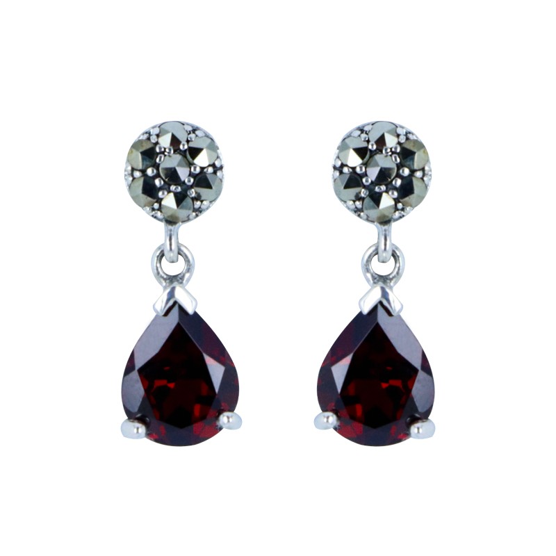Ces boucles d’oreilles en argent 925 mettent à l’honneur un grenat d’un rouge profond, sculpté en forme de goutte et délicatement retenu par trois griffes discrètes. Ce joyau éclatant est suspendu à un maillon mobile, offrant un subtil mouvement à chaque geste. L’attache en argent finement ouvragée de délicates marcassites, apporte une touche d’éclat supplémentaire.