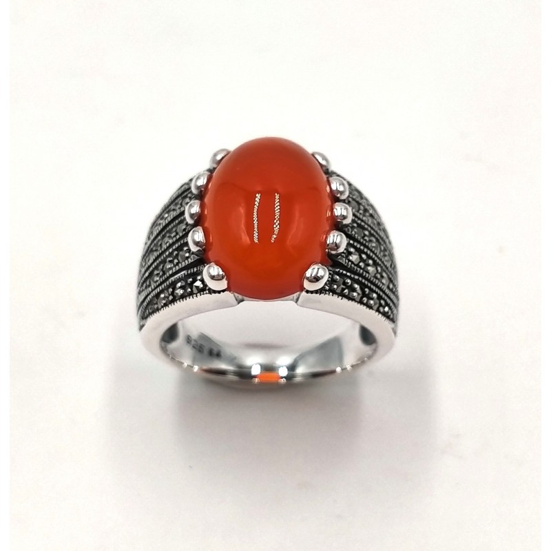 Plongez dans l’univers du charme avec cette somptueuse bague en argent 925: en son centre, une lumineuse cornaline de forme ovale, sertie avec soin dans une monture délicatement couverte de marcassites scintillantes. Pour parfaire son éclat, cinq perles d’argent viennent souligner la pierre, apportant un subtil équilibre entre finesse et sophistication.