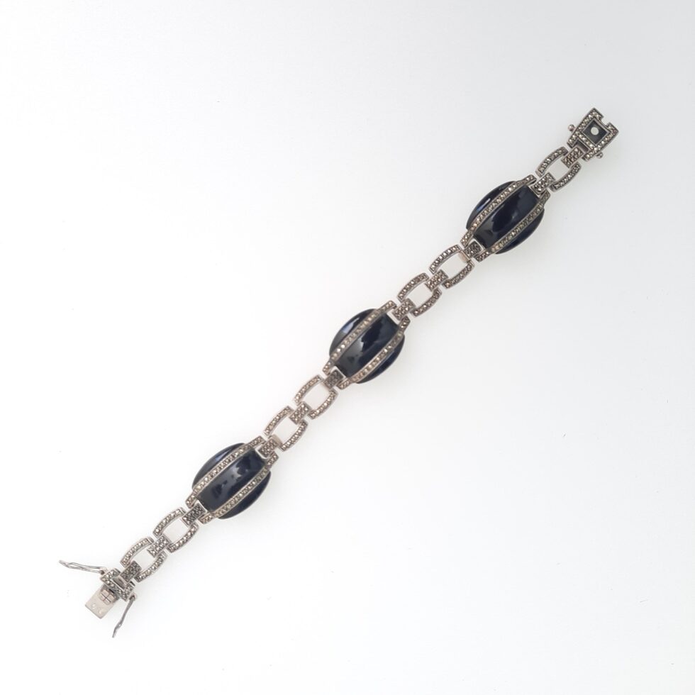 Très chic bracelet argent 925 vieilli, en onyx et marcassites.